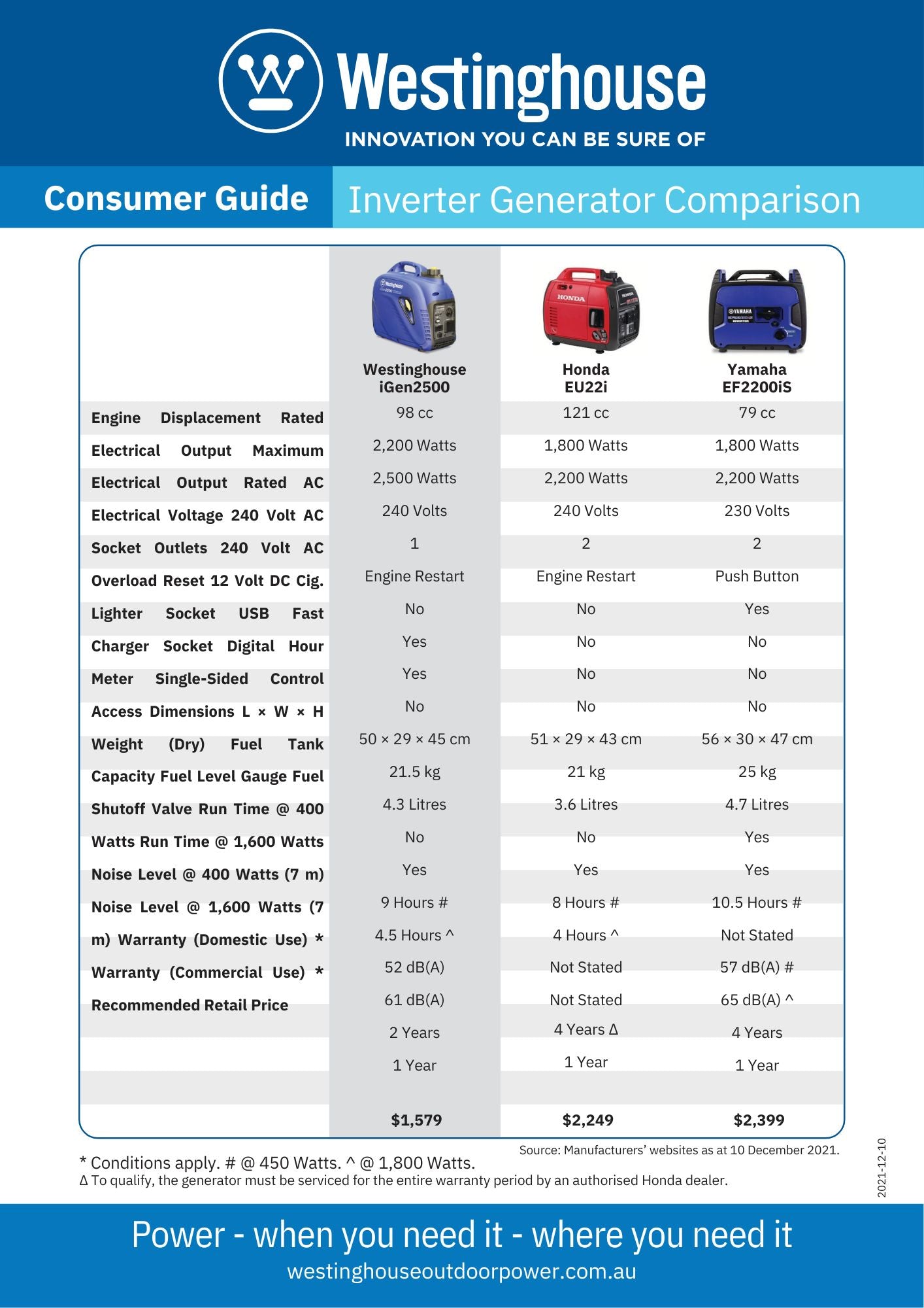 For more than a century, Westinghouse has consistently provided innovative, reliable, high-quality products and customer service. It’s a combination of ground-breaking technology and rock-solid dependability that’s made Westinghouse one of the world’s most trusted brands. From outdoor portable generators that provide power for your home, work and play moments, to high-definition TVs that are setting new standards for performance, there constantly developing advanced products, rigorously testing them to make sure they work time after time, day after day.